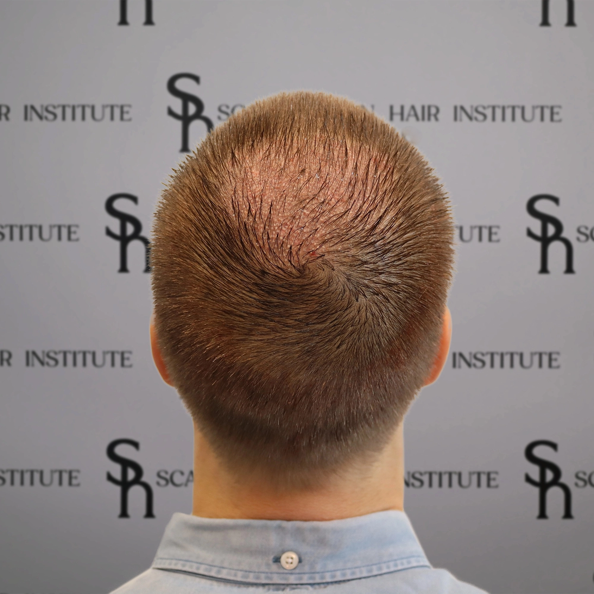 Med en reperativ kirurgi som använde endast 1 200 hårsäcksgrupper kunde vi återställa ett fylligare och mer naturligt utseende.