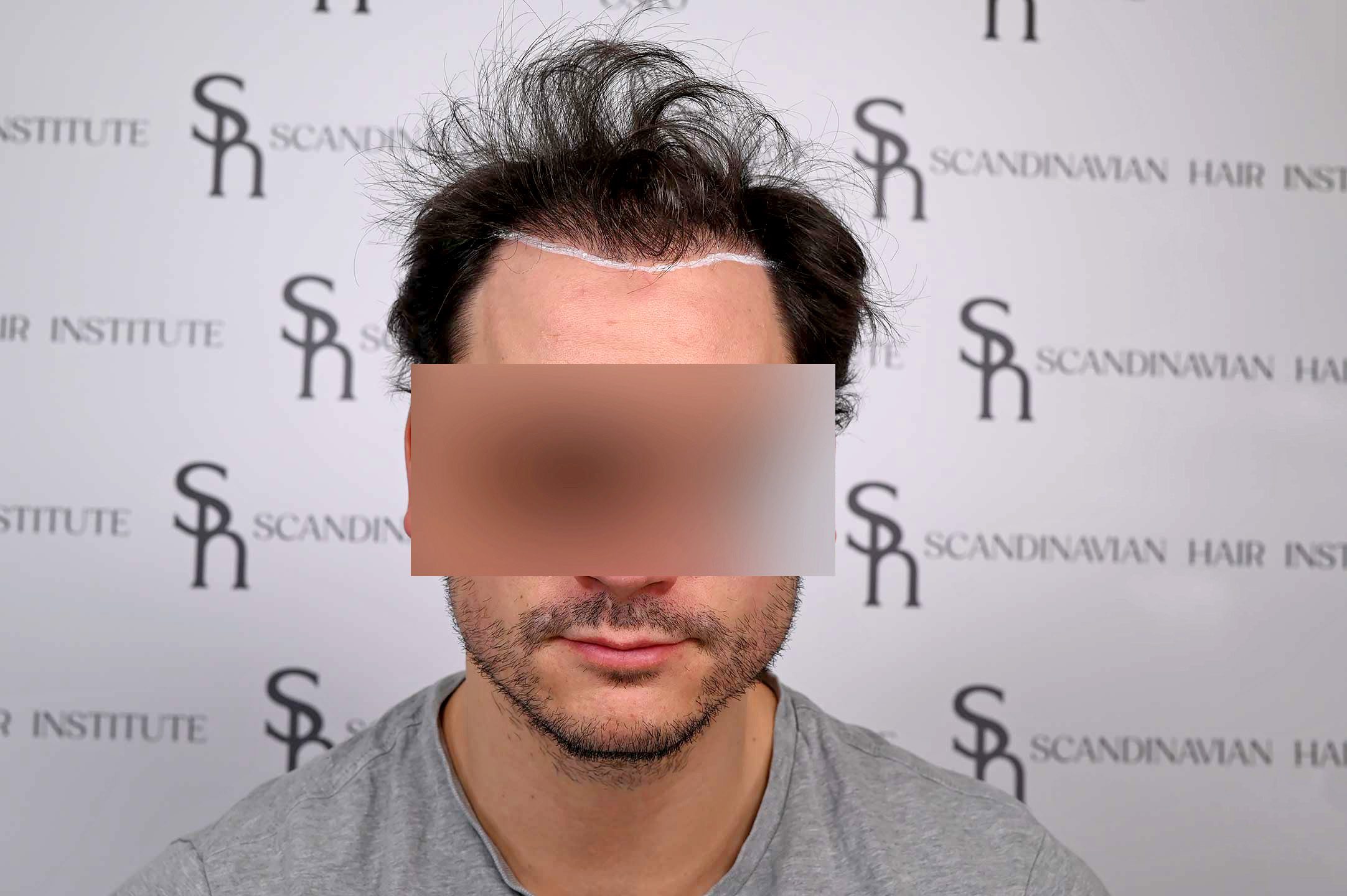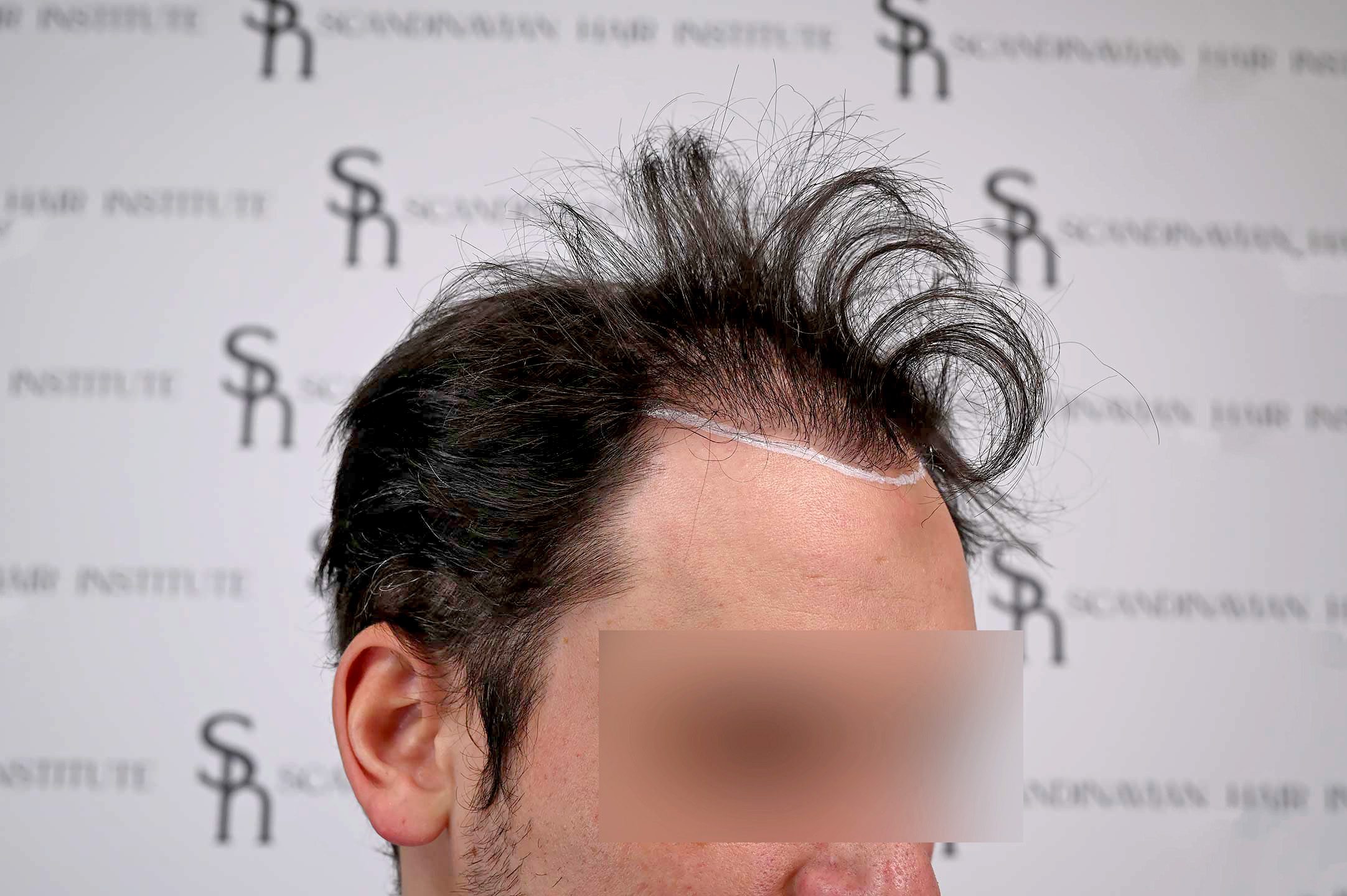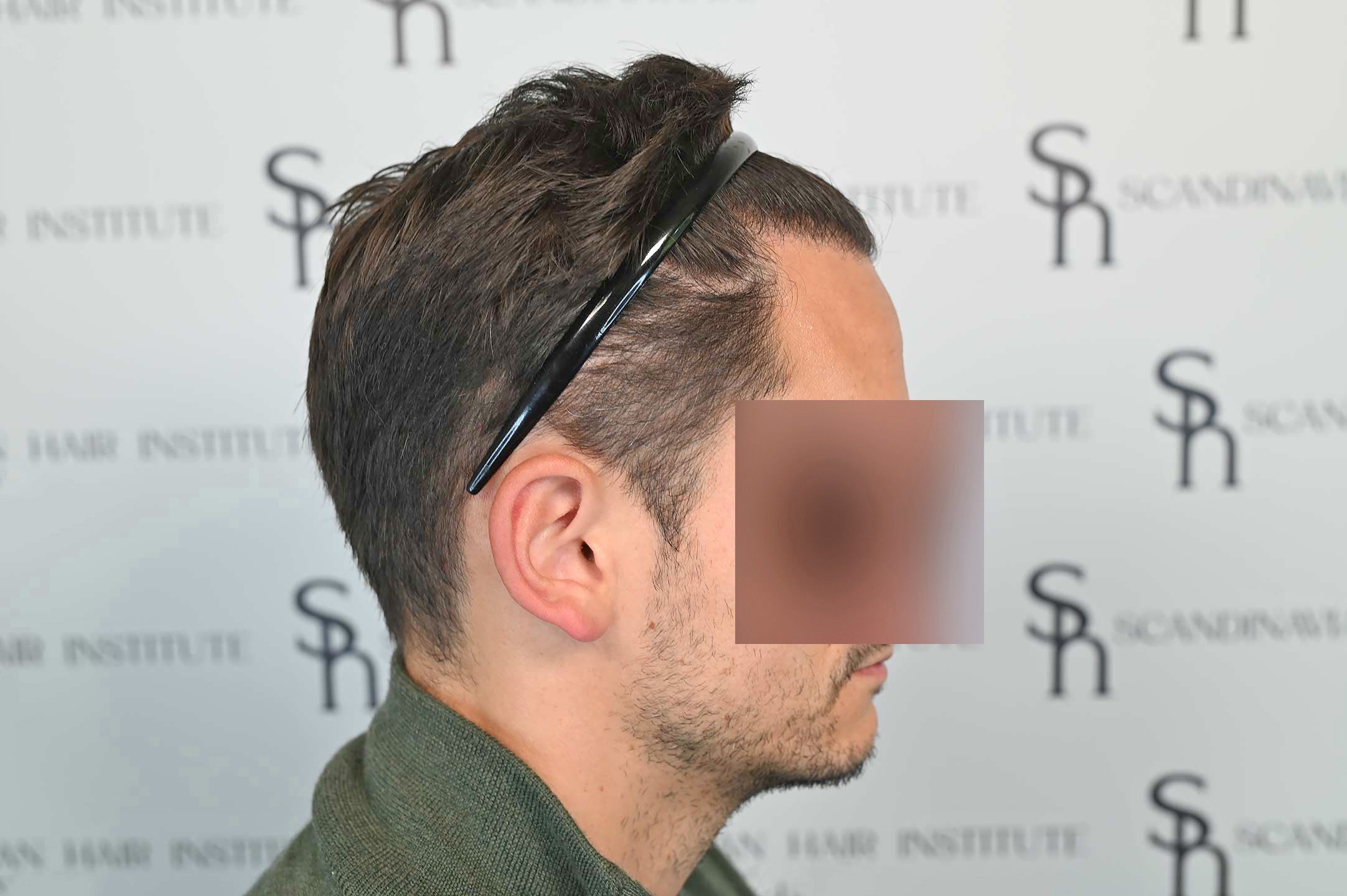 David kom till oss efter att en tidigare FUE-operation på annan plats hade lämnat honom med synlig ärrbildning och en onaturlig hårlinje.