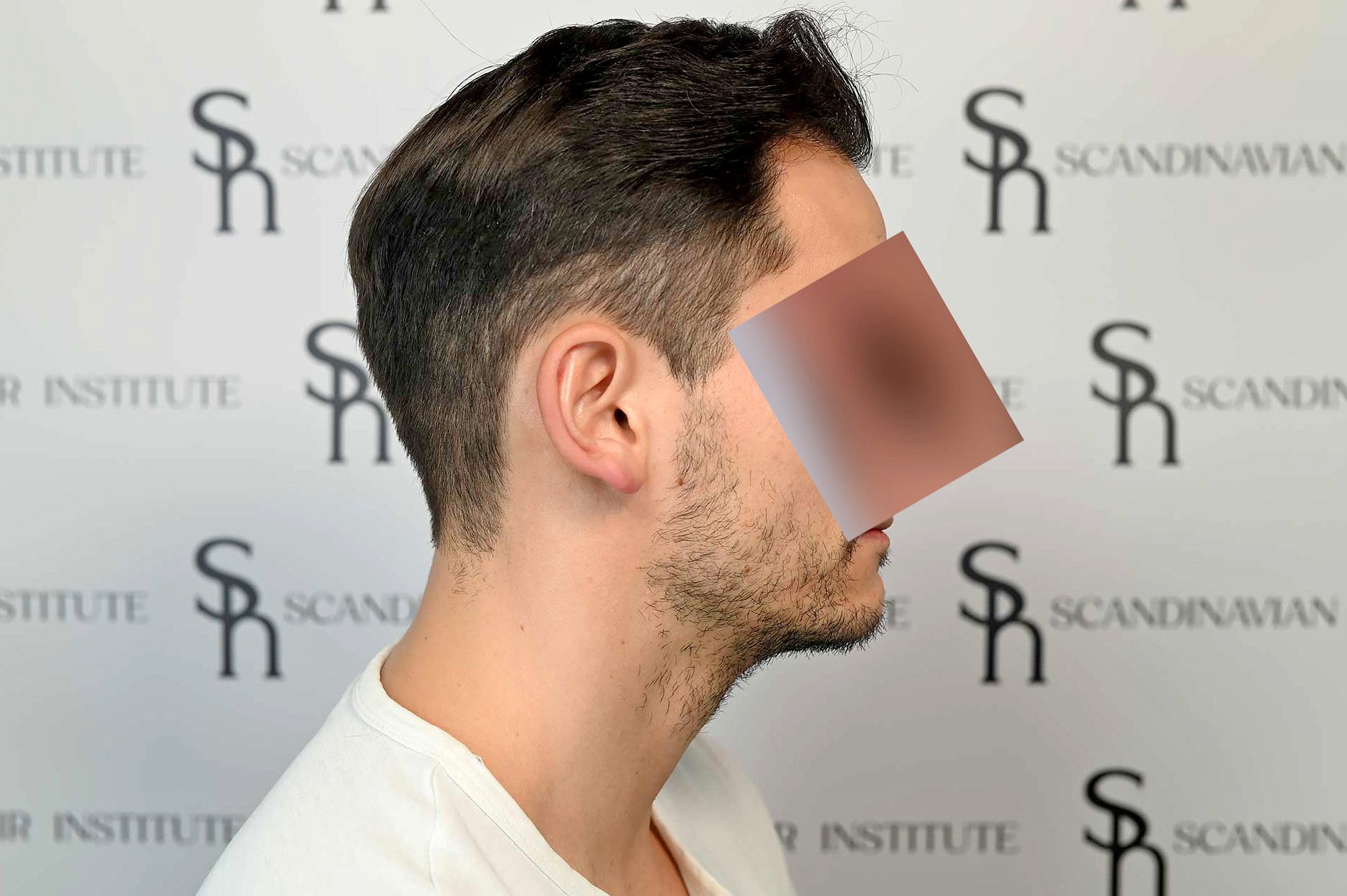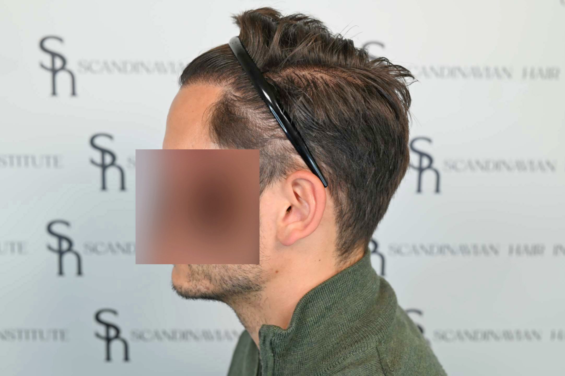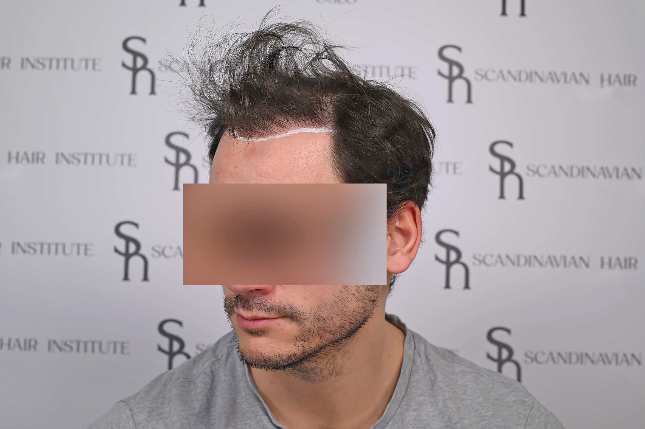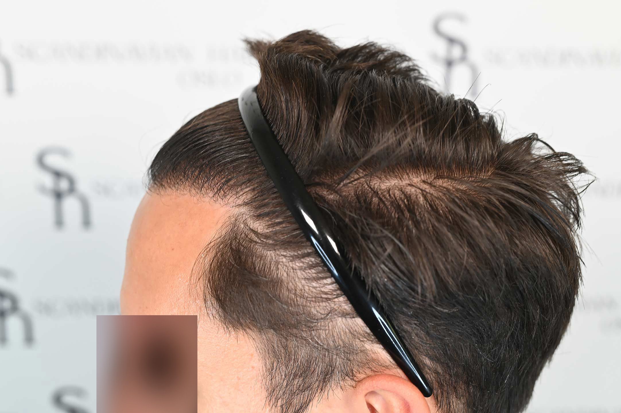 David kom till oss efter att en tidigare FUE-operation på annan plats hade lämnat honom med synlig ärrbildning och en onaturlig hårlinje.