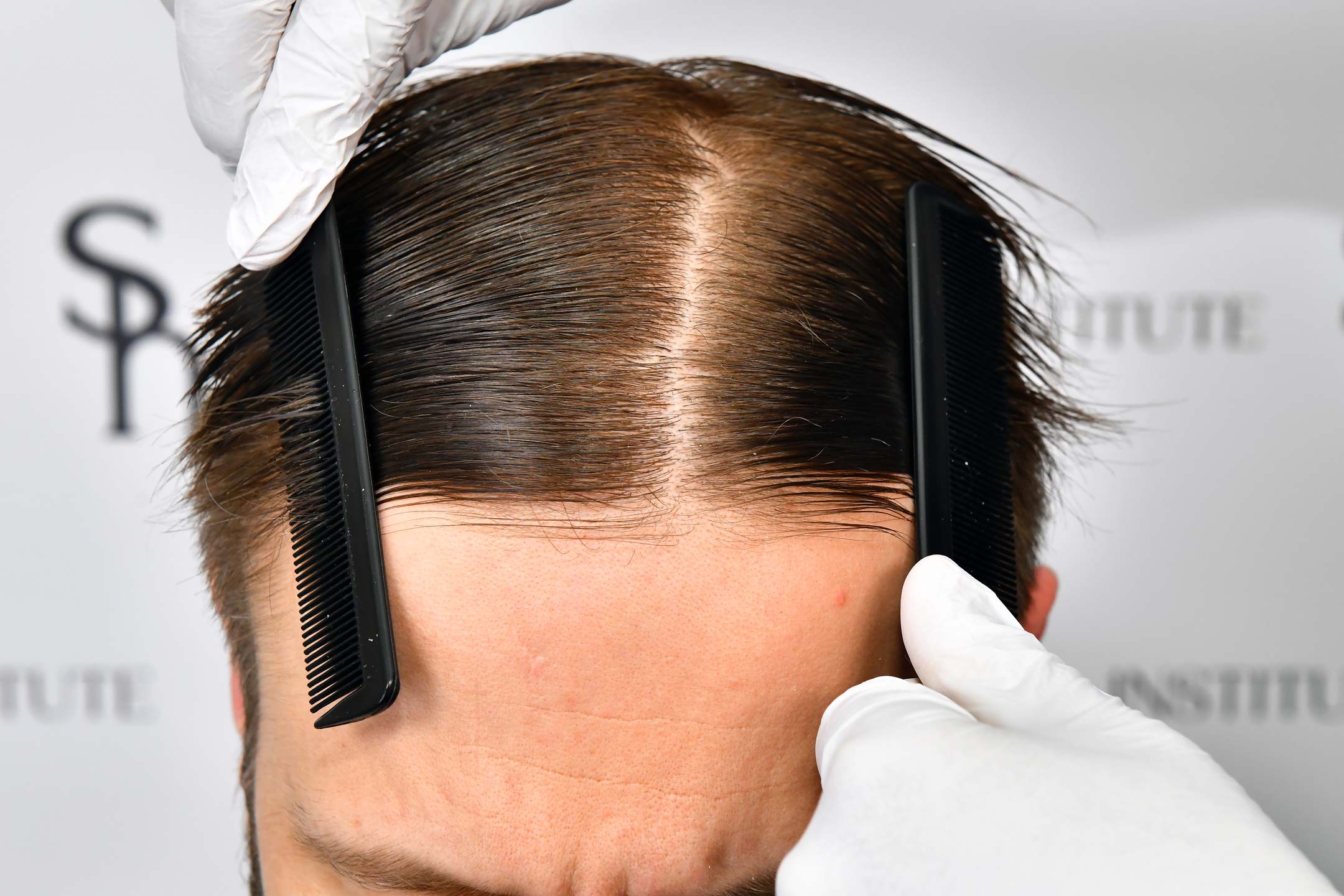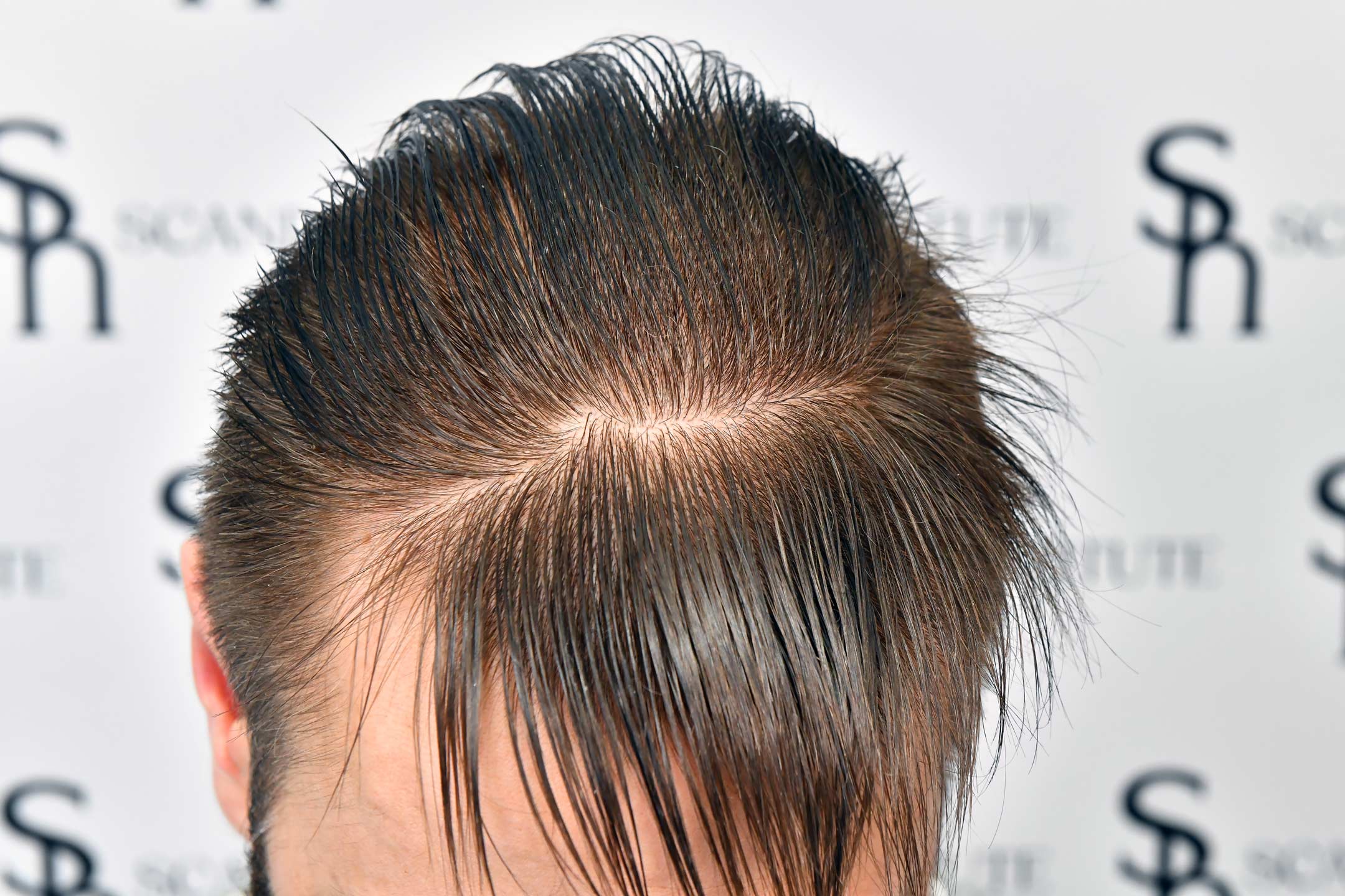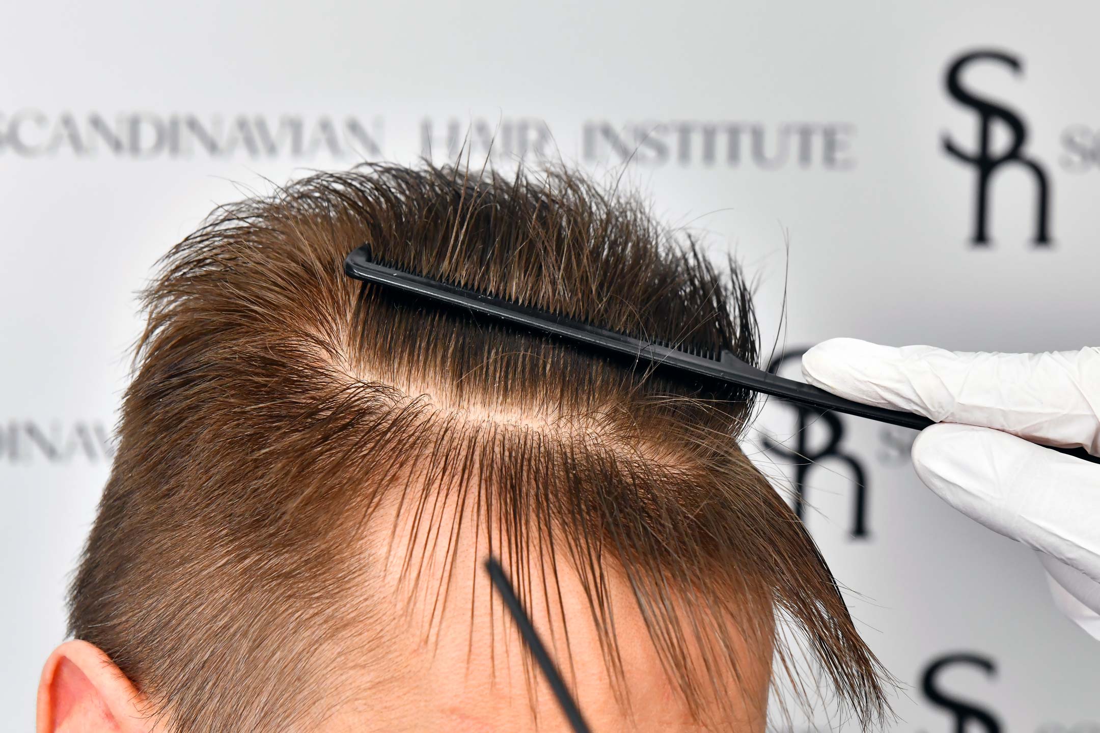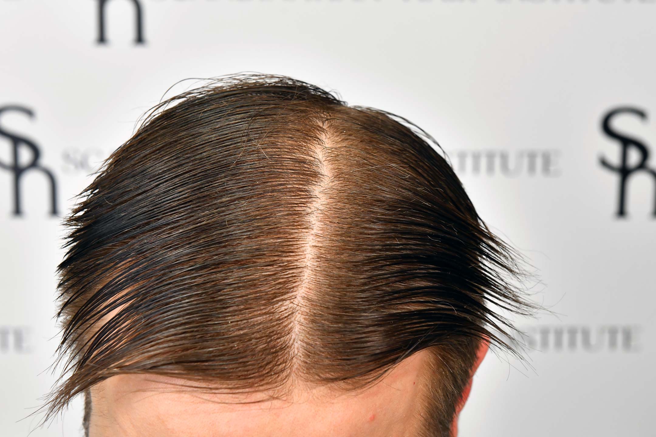 Av de 5 500 grafts placerades 550 fina singelhår strategiskt längs fronten för att säkerställa en mjuk och realistisk övergång, medan de resterande 4 950 grafts fördelades över hårlinjen, toppen och hjässan. Resultatet är ett fylligt och naturligt hår med inga synliga tecken på tidigare skallighet.
