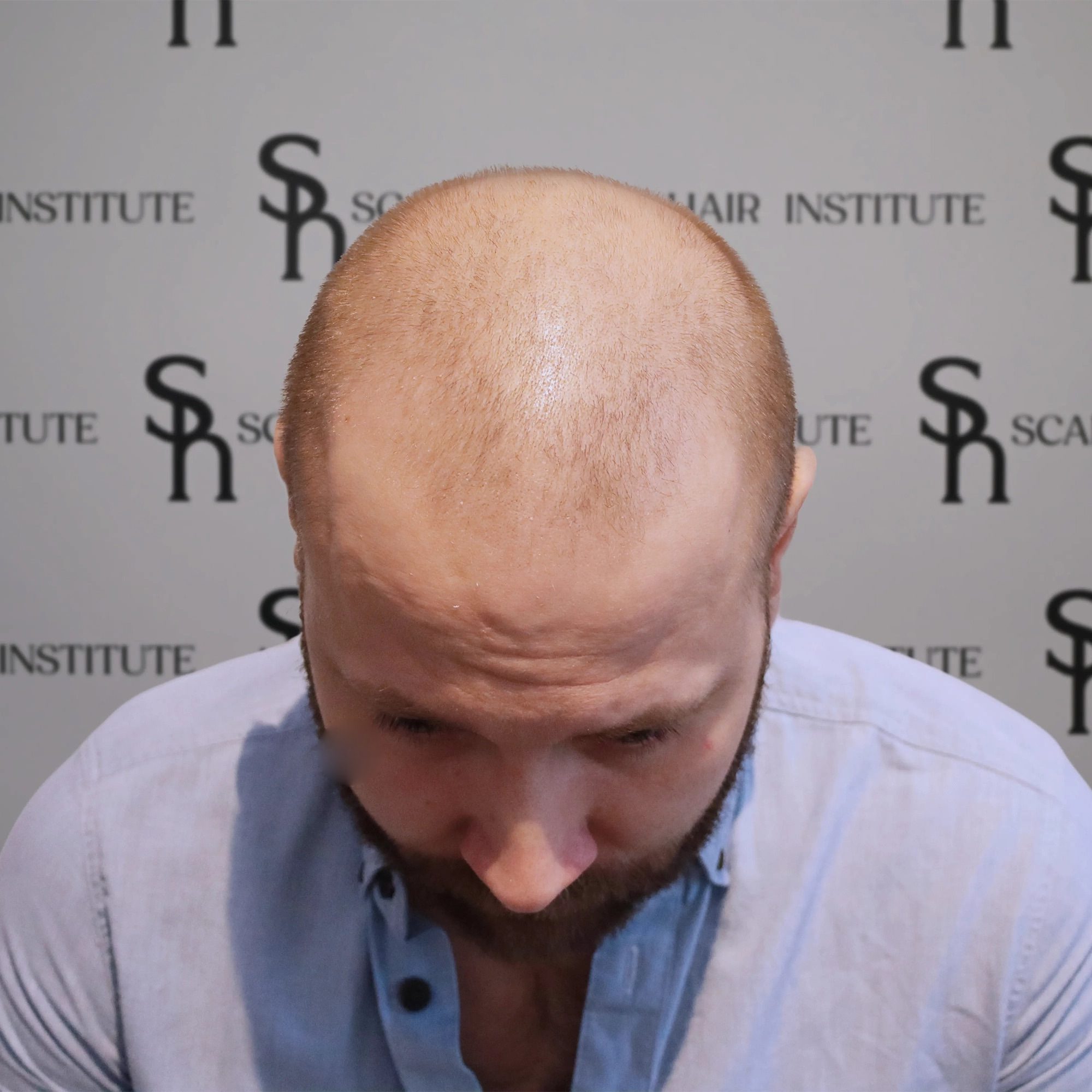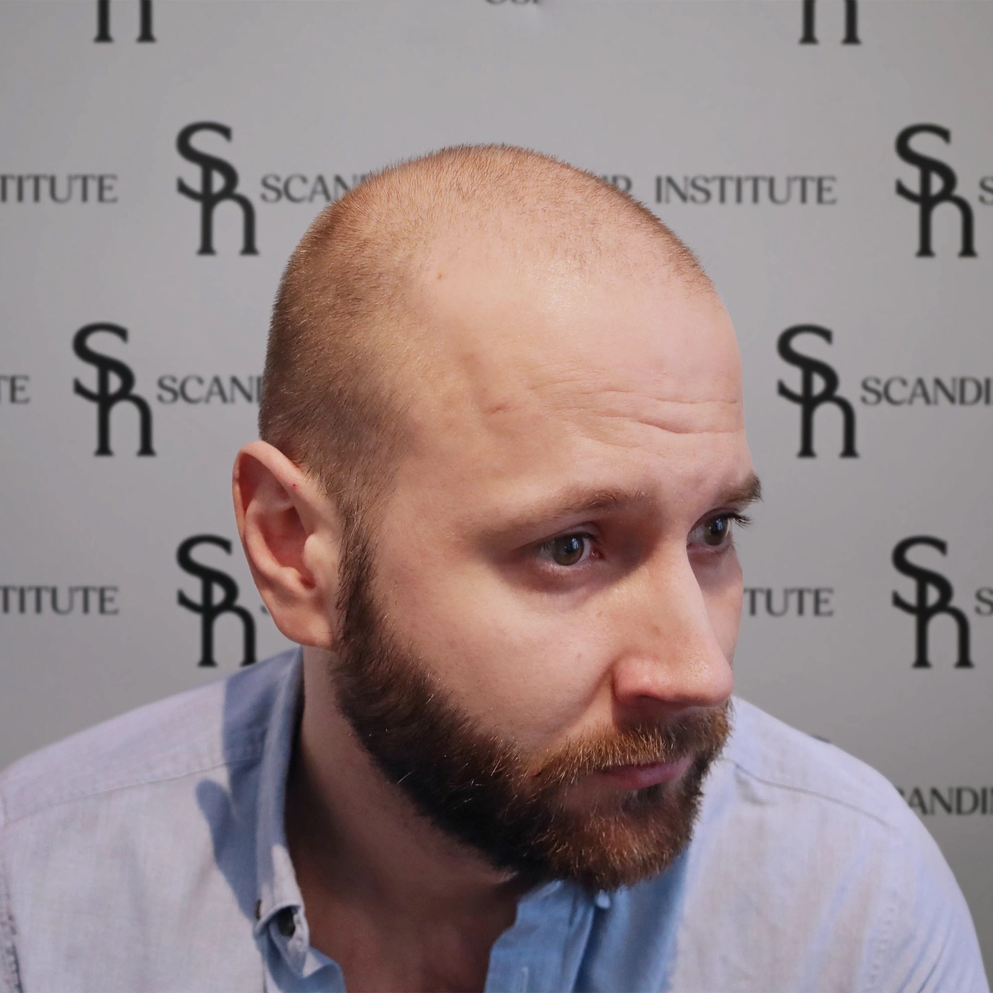 Martin kom till oss i januari 2023 efter att ha förlorat allt hår på hjässan.